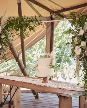 Bordstativ med klemmer til dekor og blomstre – Hvit – 150cm L x 88cm H
