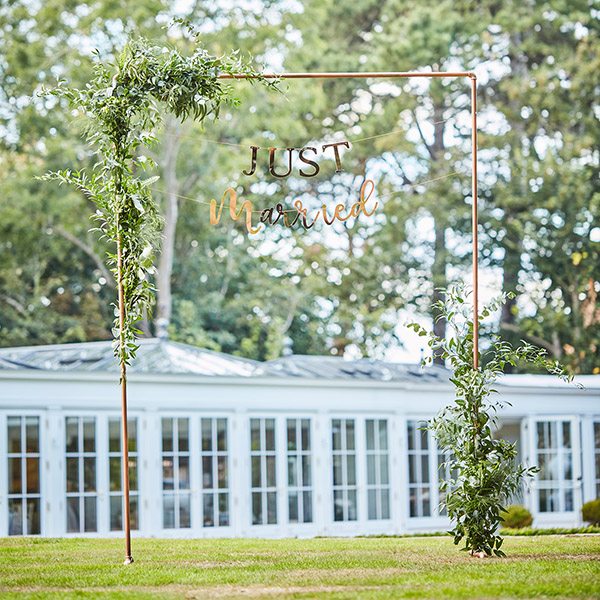 Denne kobberrammen er den mest allsidige dekorasjonen – trekk med blomster for en blomsterbryllupsbue eller heng bilder av bruden og brudgommen for et personlig midtpunkt.