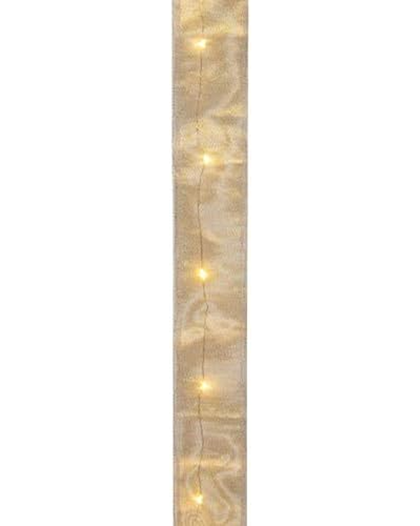 Bånd: Polyester bånd med ståltråd & led batteri – Gull – 5cm x 1,5m
