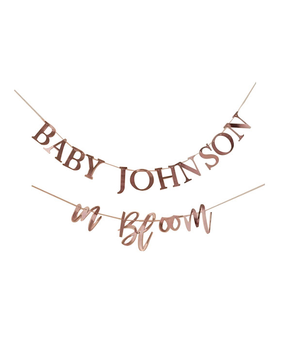 Tilpass baby shower -dekorasjonene våre med vår Customizable Baby Shower Bunting. Hver pakke inneholder 2 x 2 m tråder av rosagullgarn med en rekke rosegullbokstaver for å tilpasse din stryk! Gjør det til en baby shower å huske med våre tilpassbare dekorasjoner. Overrask ‘Mummy to be’ med baby shower hun fortjener, og tilpass baby shower dekorasjonene med navnet hennes. Bare bruk bokstavene som følger med, og tre dem gjennom snoren for å lage din helt egen Baby Shower Bunting. Med roségullfoliering er det den mest allsidige babydusjdekorasjonen som vil skape et vakkert bakteppe, spesielt når det er sammenkoblet med andre gjenstander fra serien «Baby in Bloom».