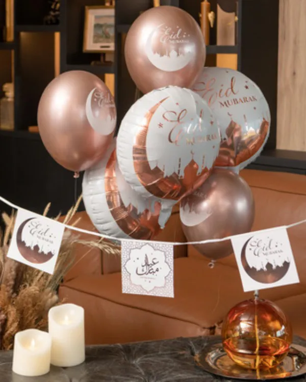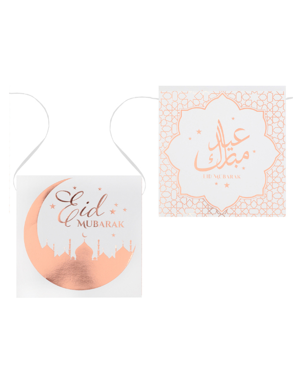 Feir den hellige anledningen av Eid med denne fantastiske «Eid Mubarak» banneren i rosefarget gull! Med en imponerende størrelse på 5 meter x 15 centimeter, vil denne banneren definitivt tiltrekke seg oppmerksomhet og skape en festlig atmosfære. Den er perfekt for å dekorere hjemmet, kontoret eller festlokaler under Eid-feiringen. Laget av høykvalitets materiale, er denne banneren holdbar og kan brukes år etter år. Gjør Eid-feiringen enda mer minneverdig med denne vakre «Eid Mubarak» banneren i rosegull!