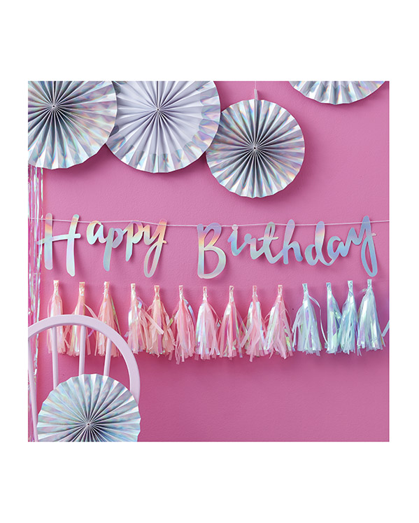 Banner / Girlander: «Happy Birthday» – Iriserende – 1,5m