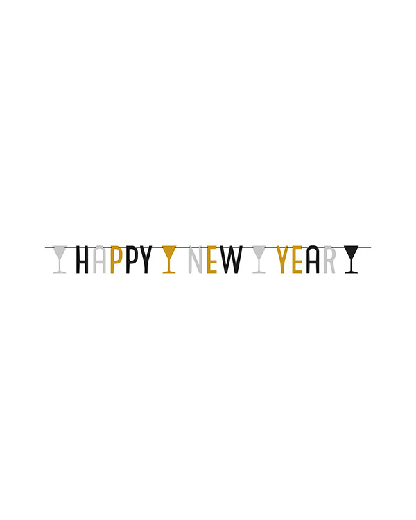 Få en fantastisk start på det nye året med vår flotte «Happy New Year» banner / girlander! Denne 180 cm lange dekorasjonen vil definitivt sette stemningen for feiringen. Med sitt fargerike og festlige design er den perfekt for å pynte opp festlokaler, hjem eller kontorer. Laget av høykvalitetsmaterialer, er denne banneren holdbar og kan brukes år etter år. Ikke gå glipp av sjansen til å ønske alle en riktig god nyttår med vår flotte «Happy New Year» banner / girlander på 180 cm!