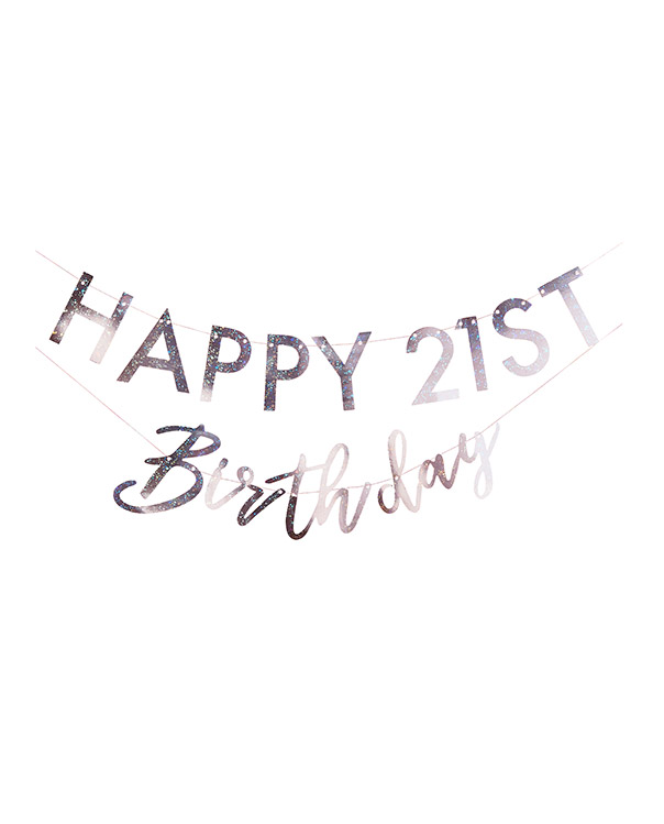 1 stk. Girlander med iriserende sølvfarge og teksten «Happy Birthday». Girlanderen kommer med tall 0-9 (2stk av hver), slik at du kan personliggjøre den for Din anledning. Sett stas på bursdagen og dekorer festlokalet med dette banneret når dere skal feire. Girlanderet kommer på to snorer, og kan henges opp på alle typer vegger. Hver pakke består av 2 x 1,75 m L-tråder og 2 stk av hvert nummer mellom 0 og 9 for å tilpasse og ‘RD’ ‘TH’ og ‘ND’ bokstaver.