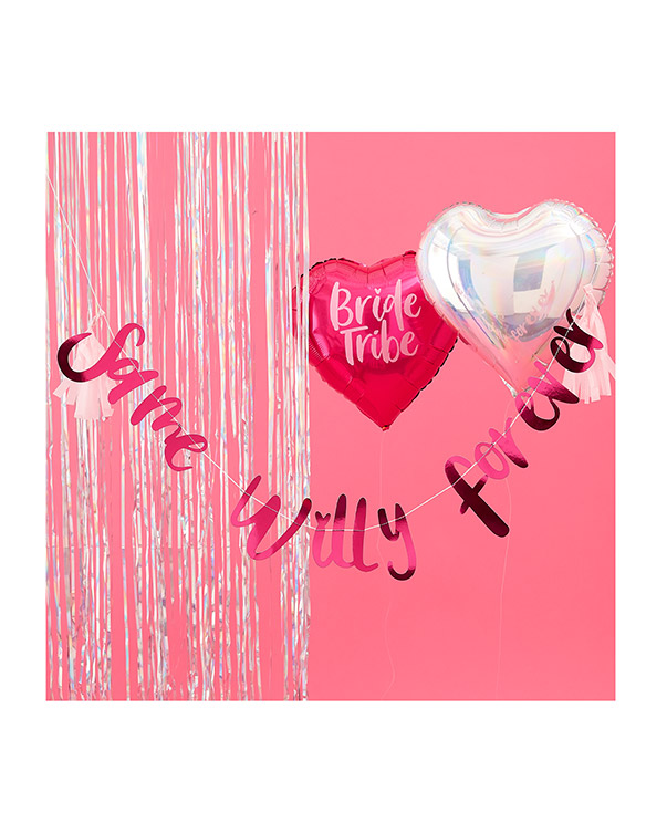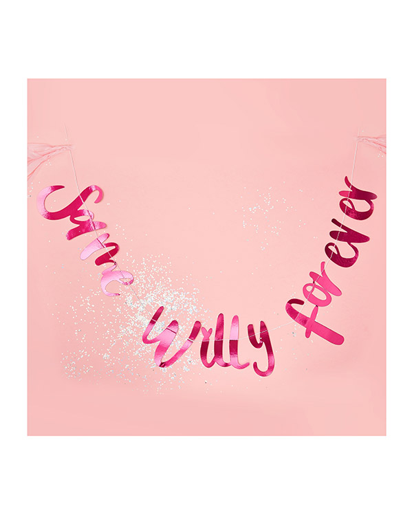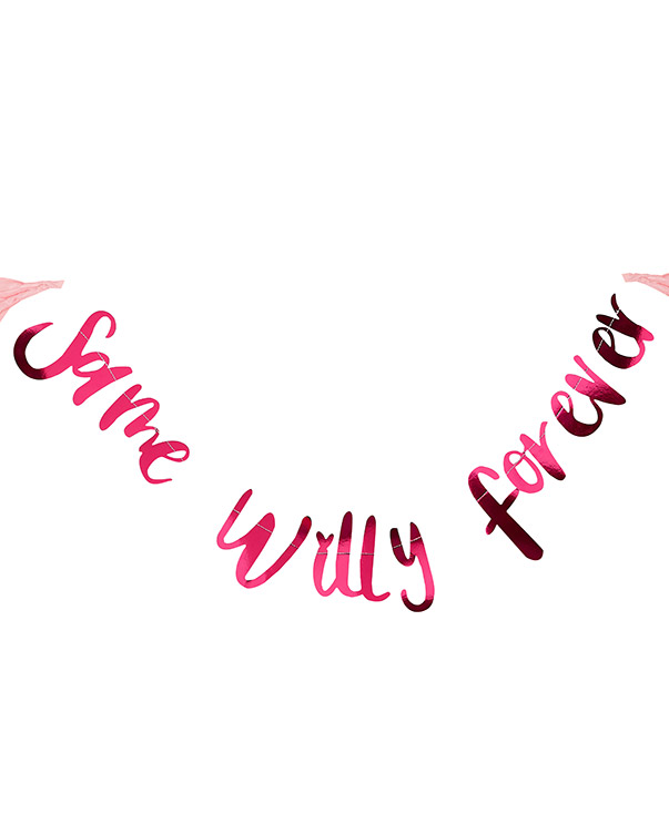 1 stk. Girlander med rosa farge og teksten «Same Willy Forever». Frekk og morsomt dekor som tar din neste fest til nye høyder. Girlanderet kommer på en snor, og er 3m langt. Kan henges opp på alle typer vegger.