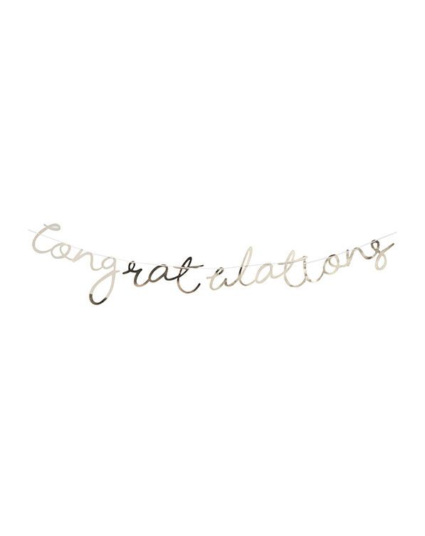 1 stk. Girlander med gull bakgrunnsfarge og teksten «Congratulations». Passer perfekt som dekor til bursdagsfest, eller som en gave til bursdagsbarnet. Girlanderet kommer på en snor, og er 1,5m langt. Kan henges opp på alle typer vegger.