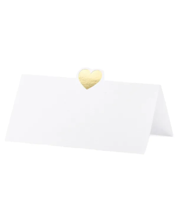 Bordkort (10stk): Med hjerte – Hvit & Gull – 10x5cm