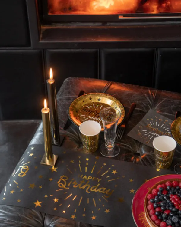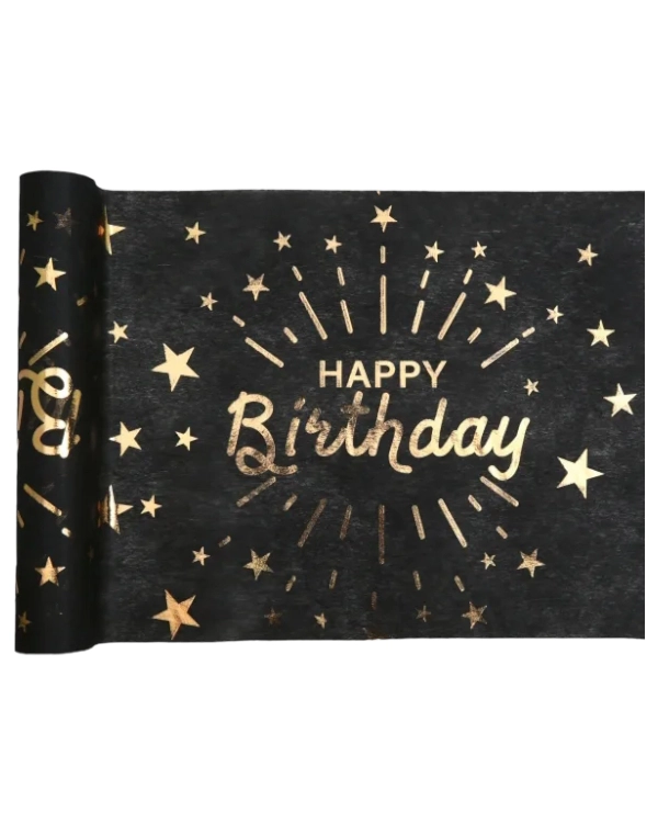 Bordløper: Gull – Happy Birthday – Metallisk – 5m x 30cm