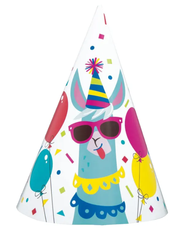 8 stk festhatter med bilde av llama. Gjør den llama festen ekstra spesiell med en llama festhatter.
