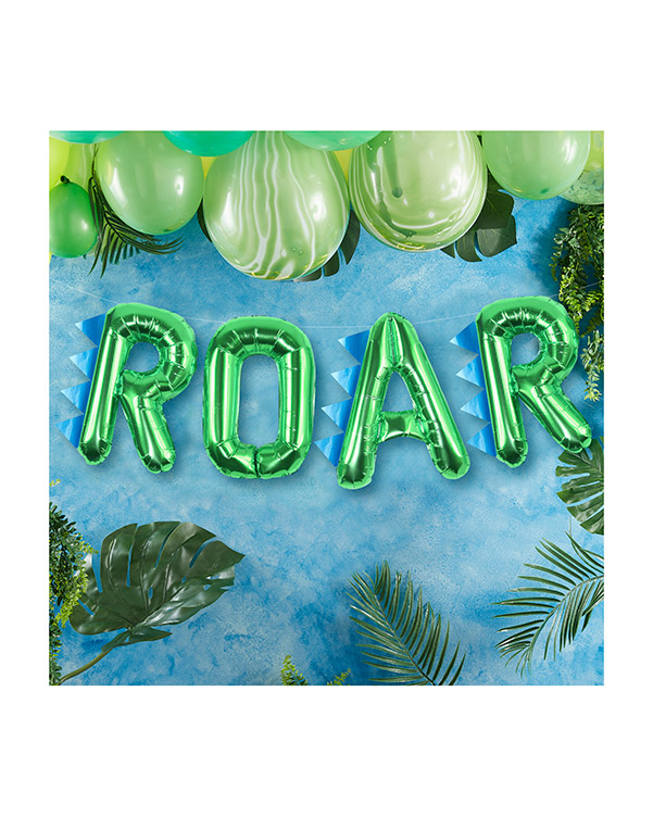 1 stk. Girlander med folieballonger som har dinosaurfarger og dinosaurdekorasjoner som tema. Ballongene er formet med teksten «Roar». Passer til alle typer bursdagsfester som dekor eller gave til bursdagsbarnet. Kan fylles med luft eller helium. Bruk gjerne en ballongvekt så den ikke flyr sin vei.