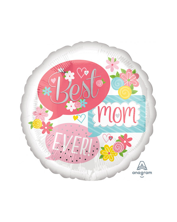 En rund folieballong på 71×71 cm med snakkebobler som sier»Best mom ever». Overrask moren din med denne på en helt vanlig dag, morsdag eller bursdag. Kan fylles med luft eller helium. Kjøp gjerne en ballongvekt så den ikke flyr sin vei.
