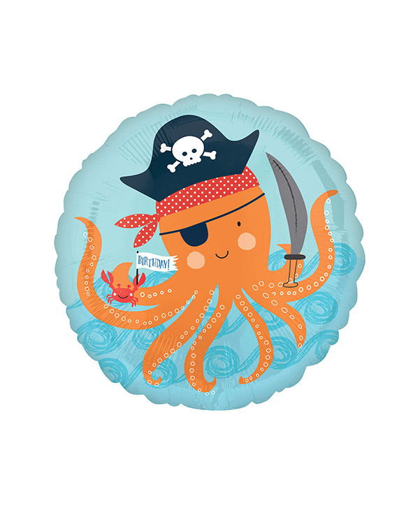 Rund folieballong på 43 cm med «Birthday» med bilde av to haier med sjørøverhatt. Perfekt til bursdagsfeiring for et bursdagsbarn som er glad i havet og sjørøvere . Fylles med luft eller helium. Kjøp gjerne med en ballongvekt så den ikke flyr sin vei.