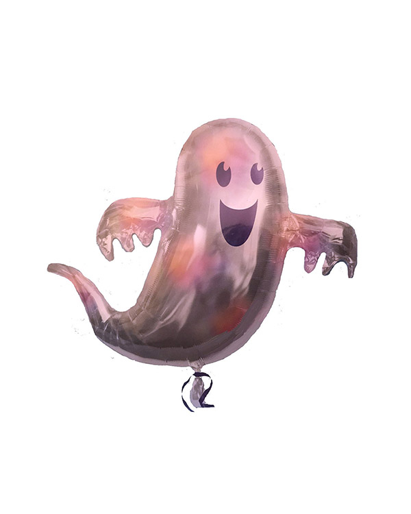 Folieballong på 94 x 69 cm formet som et spøkelse. Fargen er iriserende, som gjør den ekstra stilig. Passer perfekt til tema feiring eller andre festligheter. Kan fylles med luft eller helium. Bruk gjerne en ballongvekt eller en ballongpinne så ballongen din ikke flyr sin vei.