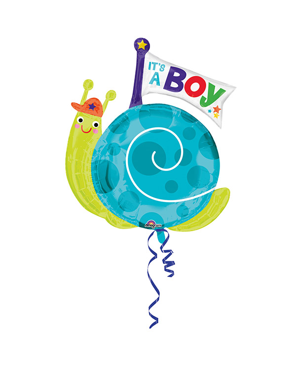 1 stk folieballong på 68×73 cm. Ballongen er formet som en søt snegle med teksten «It´s a Baby Boy». Gi ballongen som en gave til de nybakte foreldrene, eller bruk den som pynt på babyshower. Kan fylles med luft eller helium. Bruk gjerne en ballongvekt så den ikke flyr sin vei.