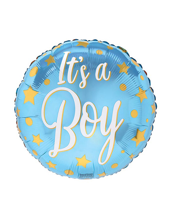 1. stk. Hjerteformet folieballong med lyseblå bakgrunnsfarge og gullfargede stjerner. Kommer med teksten «It’s a Boy». Ballongen kan bli opptil 43cm stor når den blåses opp. Passer perfekt som gave til nybakte foreldre, og til avsløring av kjønnet på babyshower. Kan fylles med luft eller helium. Bruk gjerne en ballongvekt så den ikke flyr avgårde.
