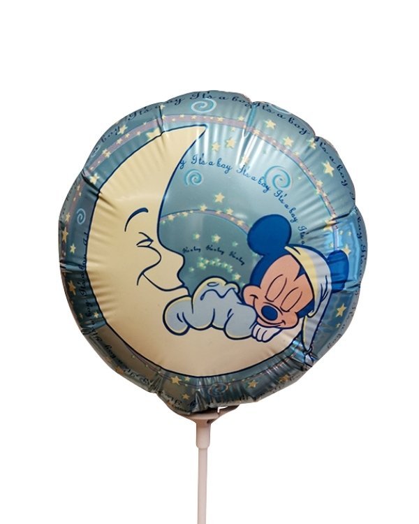 1 stk liten folieballong. Ballongen rund med Mikke Mus og skriften «It´s a Boy». Gi ballongen som en gave til de nybakte foreldrene, eller bruk den som pynt på babyshower. Kan fylles bare fylles med luft, ikke helium.