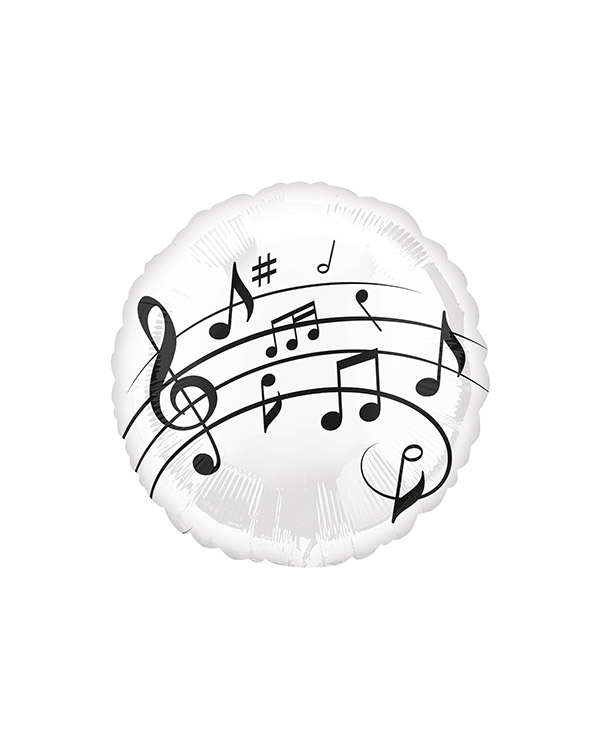 1 stk rund folieballong på 43 cm. Ballongen er hvit med svarte toner og gnøkkel på. Kan brukes som pynt på konsert eller på temafest. Kan fylles med luft eller helium. Bruk gjerne en ballongvekt så den ikke flyr sin vei.