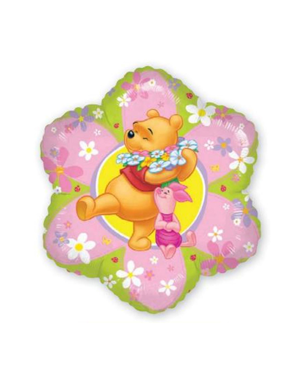 1 stk blomsterformet folieballong på 38cm. Motivet på ballongen er Ole Brumm og Nasse Nøff som koser seg i en blomstereng. Bruk den som pynt på barnerommet, i et bursdagsselskap eller på Disney-fest. Kan fylles med luft eller helium. Bruk gjerne en ballongvekt så den ikke flyr sin vei.