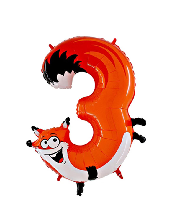 1. Stk folieballong med en morsom revefigur formet med tallet «3». Ballongen kan bli opptil 101,6cm stor når den blåses opp. Passer perfekt til bursdager og temafester for yngre barn. Kan fylles med luft eller helium. Bruk gjerne en ballongvekt så den ikke flyr sin vei.