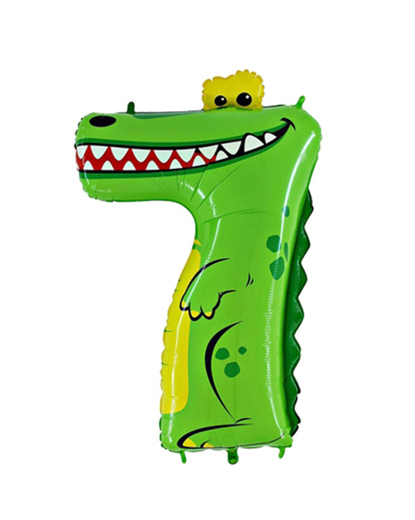 1. Stk folieballong med en morsom krokodillefigur formet med tallet «7». Ballongen kan bli opptil 101,6cm stor når den blåses opp. Passer perfekt til bursdager og temafester for yngre barn. Kan fylles med luft eller helium. Bruk gjerne en ballongvekt så den ikke flyr sin vei.