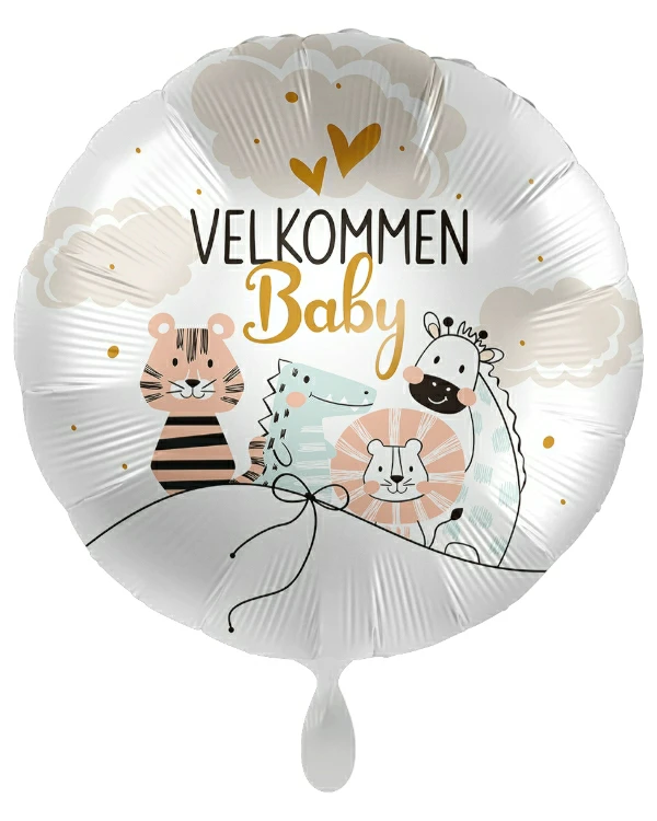 Folieballong: »Velkommen baby» med dyr – 43cm