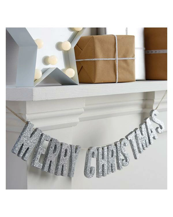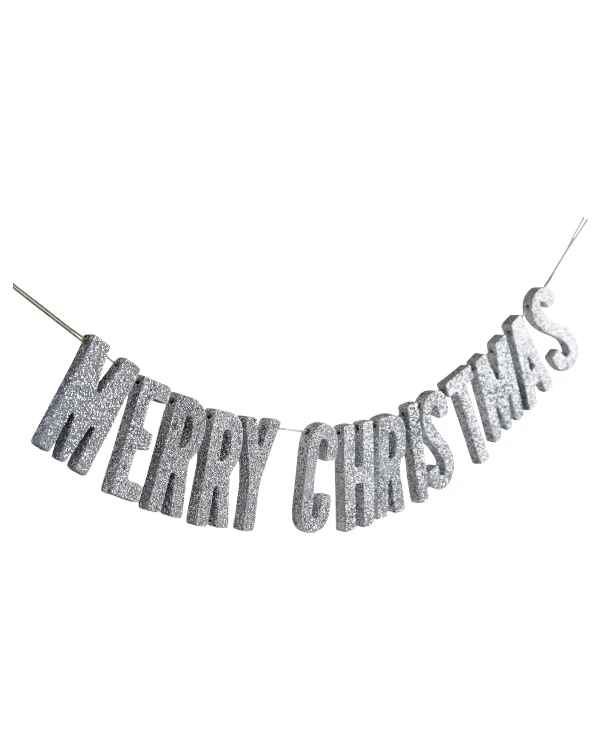 Girlander / Banner: «Merry Christmas» – Glitter – Sølv – 70cm
