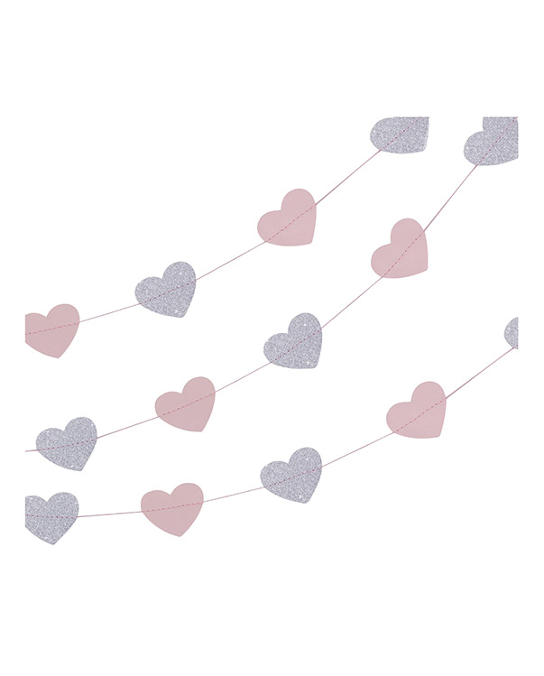 Girlander: Hjerter – Rosa & Sølv – 5m