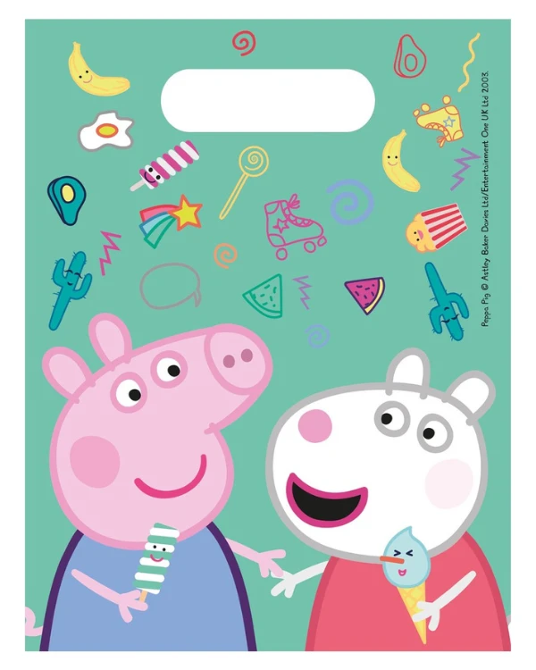 Kos deg med disse søte Godteposene med Peppa Gris-tema! Hver pakke inneholder 6 poser med deilig godteri som vil glede både små og store. Perfekt til bursdagsfeiringer, barnefester eller som en liten overraskelse til dine kjære. Med fargerike og morsomme design vil disse godteposene garantert skape en festlig stemning. Bestill nå og få en smakfull opplevelse med Peppa Gris!