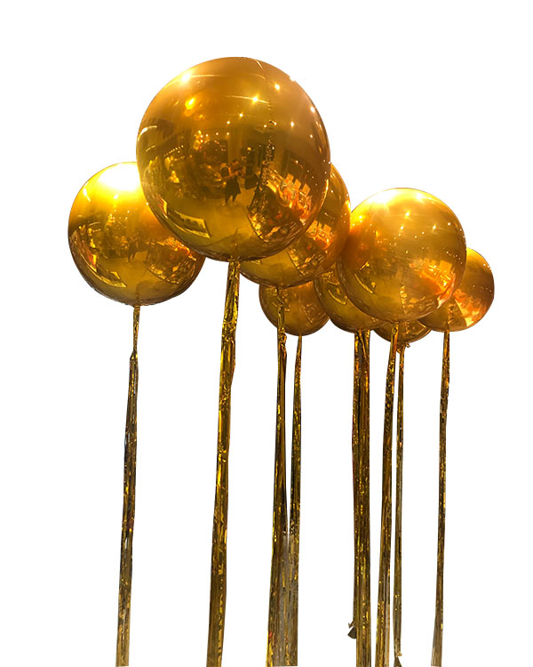 Gullfargede orbz på 40cm med gulltassels. Orbzene er helt runde og gir et morsomt utrykk. Bruk de som dekorasjon på fest eller nyttårsaften for å skape en flott atmosfære. All vår dekor håndlages for hver gang, og det vil kunne oppstå varisjoner i forhold til det du ser avbildet.