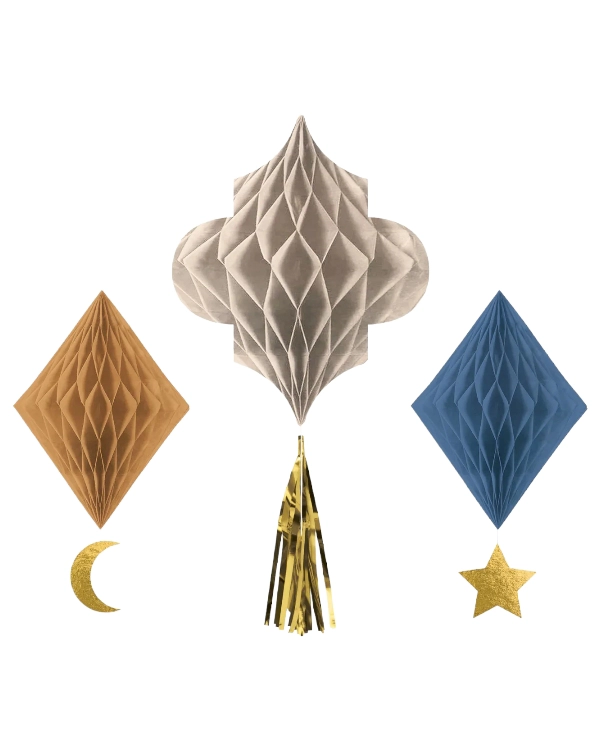 Honeycomb / Hengedekorasjoner (3stk): Eid Mubarak – Flerfarget