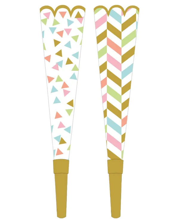 Vil du legge til litt farger og moro i festen eller arrangementet ditt? Disse prismatiske hornene / fløytene er akkurat det du trenger! Med en vakker bølgekantdesign og en rekke livlige farger, vil disse hornene / fløytene definitivt skape en festlig stemning.