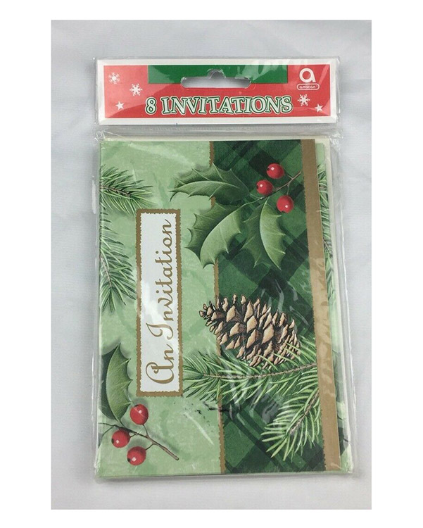 8 stk invitasjoner med julemotiv på 10x15cm. Disse klassiske, lekre julekortene med teksten «An invitation» er perfekt når du skal be inn til juleselskap.