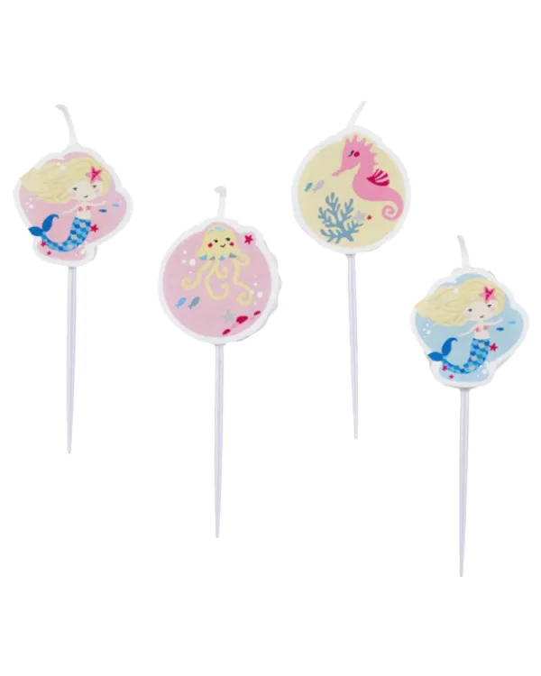 Kakelys (4stk): Havfrue tema er en fantastisk måte å pynte bursdagskaken til din lille havfrueelsker! Disse vakre kakelysene er tilgjengelige i farger som rosa, gul og blå. Kombiner disse fargerike lysene for å skape en magisk bursdagsstemning. Hvert lys er av standard størrelse og er et perfekt tillegg til kakebordet. Uansett om du feirer en bursdag, en temafest eller en annen spesiell anledning, vil disse havfrue-tematiserte kakelysene definitivt glede gjestene. Skap et minneverdig øyeblikk ved å tenne disse flotte kakelysene og la bursdagsbarnet ønske seg noe før de blåses ut. Kjøp Kakelys (4stk): Havfrue tema nå og gi bursdagskaken en ekstra touch av magi og glede!
