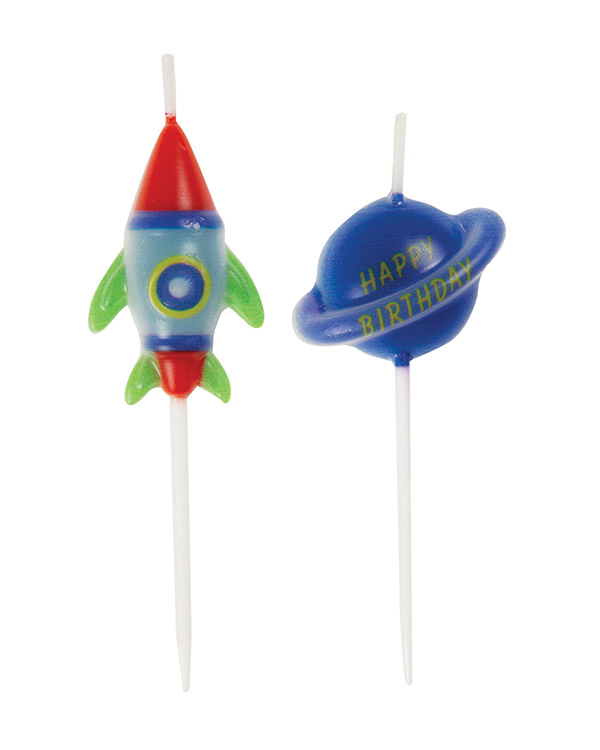 6 stk kakelys formet som raketter og planeter. Passer perfekt for å gi kaken eller cupcaksene det lille ekstra.