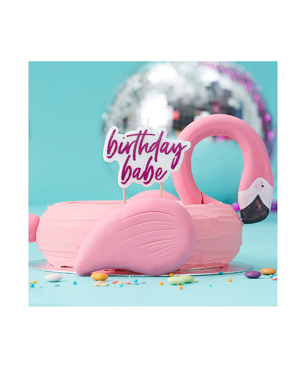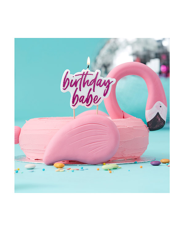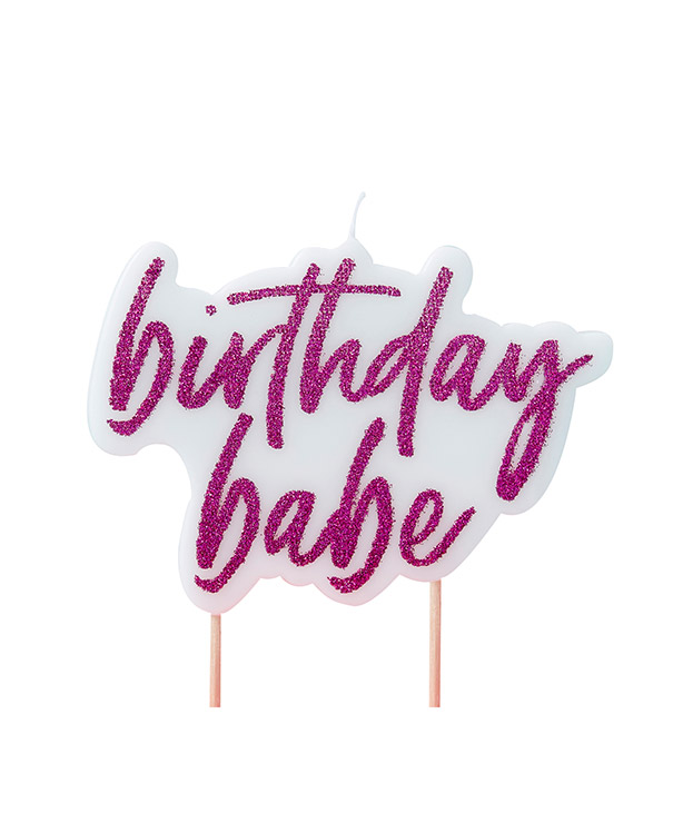 1 stk kakelys med teksten «Birthday Babe» i rosa glitter. Perfekt pynt på kaken til en babe som har bursdag! Lyset er 11cm