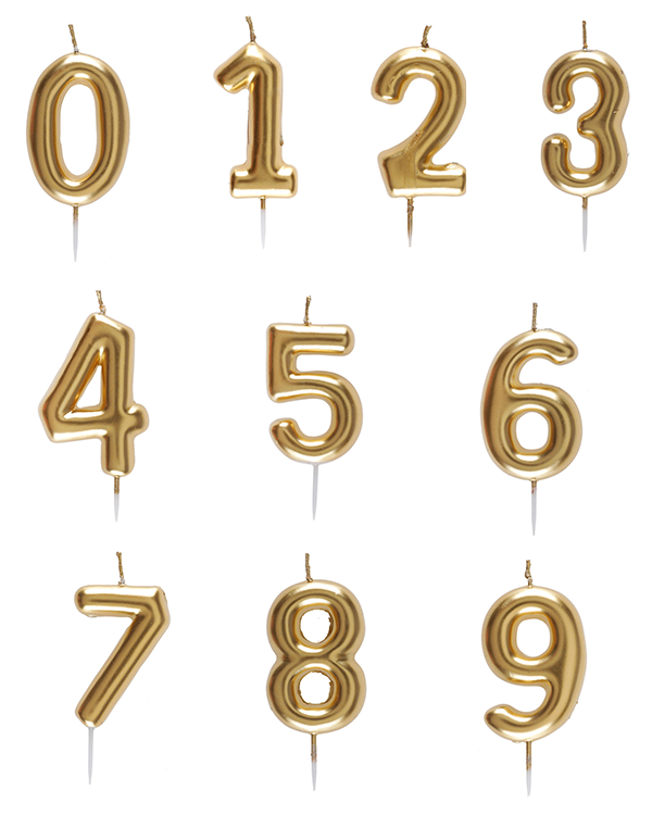 Kakelys formet som tall i gull. Kakelysene kommer i tallene 0, 1, 2, 3, 4, 5, 6, 7, 8 og 9. Et morsomt tilskudd til feiring av jubilanten. Vi har også ballonger, servietter og kopper med tall på hvis du ønsker å kjøre et gjennomført alderstema. Lyset er 9cm stort.