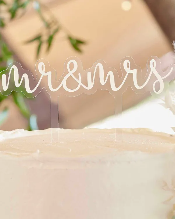 Bestill vår elegante kaketopp «Mr & Mrs» i hvit farge i dag, og gjør bryllupskaken din enda mer spesiell.