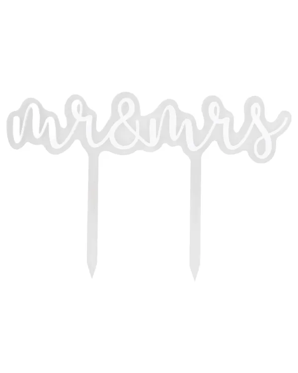 Vår elegante kaketopp «Mr & Mrs» i hvit farge er den perfekte dekorasjonen for bryllupskaken din. Denne vakre kaketoppen er laget av høykvalitets materiale som gir den et luksuriøst utseende. Med sitt stilige design og moderne skrifttype, vil denne kaketoppen legge til et snev av eleganse og romantikk til din store dag.