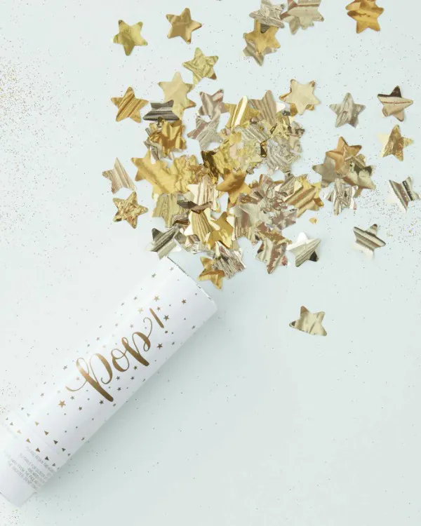 Bestill din konfettikanon med gull konfetti stjerner i dag og gjør festen din til en uforglemmelig begivenhet!
