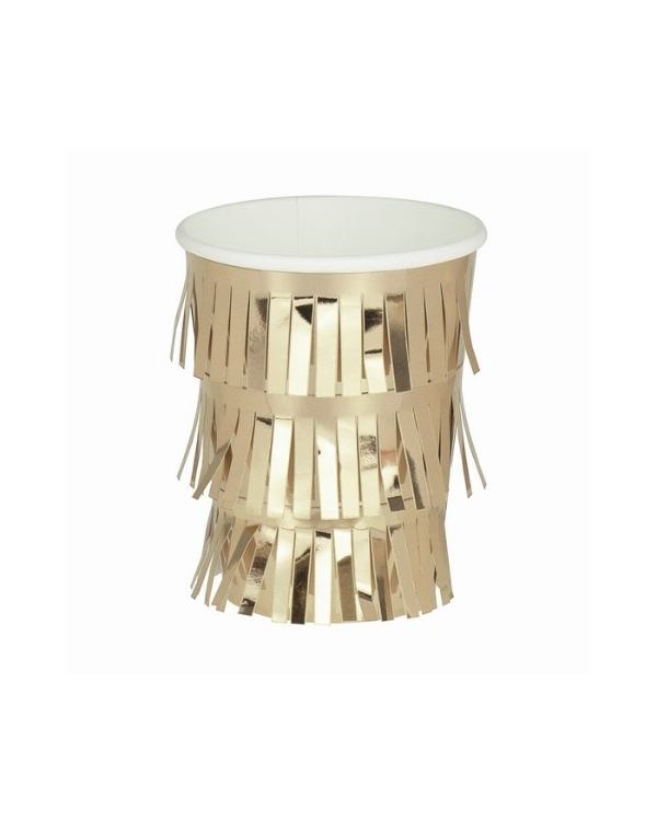 Legg til en gnistrende gnist i festdrinkene dine med disse fabelaktig frynsete gullfestkoppene. Hver pakke inneholder 8 festede kopper med gullfring.