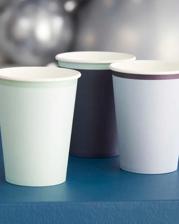 Kopper (8stk): Navy, Blå, lys blå, mint – Fargerik – 9cm H x 8cm B