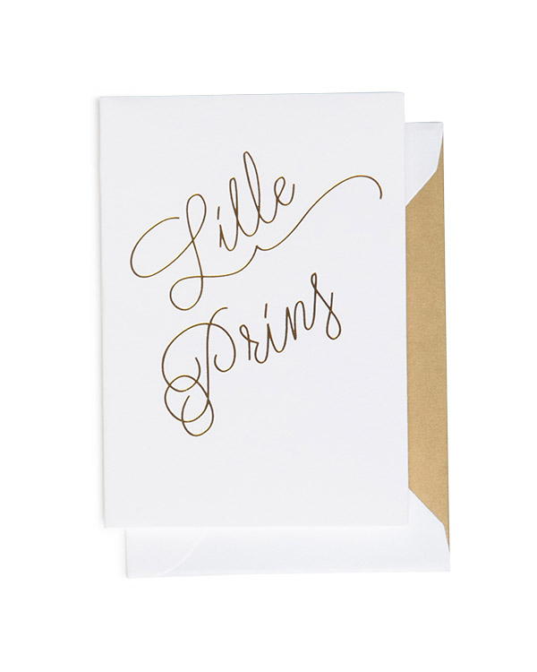 1 stk. Kort med teksten «Lille Prins». Kortet har en hvit bakgrunnsfarge med gullfarget tekst. Kommer i A6 størrelse. Har du en liten prins du kjenner som feirer bursdag? Kjøp dette kortet for å gi prinsen det han fortjener.