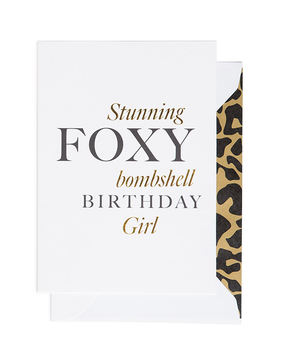 1 stk. Kort med teksten «Stunning Foxy Bombshell Birthday Girl». Kortet har en hvit bakgrunnsfarge med svart og gullfarget tekst. Kommer i A6 størrelse. Morsomt bursdagskort til kule damer.