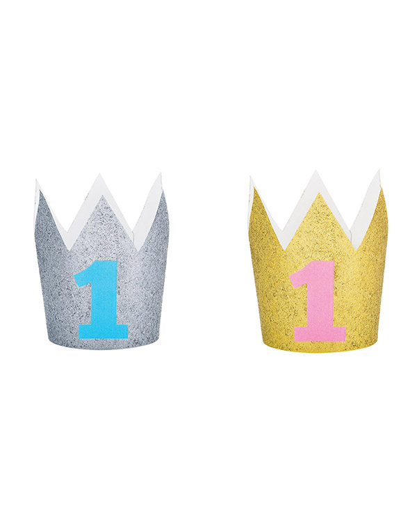 Minikrone med tallet «1» fås kjøpt i to forskjellige farger: Blå og rosa med glitter på. Kommer i 10cm størrelse. Kule minikroner som passer perfekt til bursdagsfest for de minste i huset.