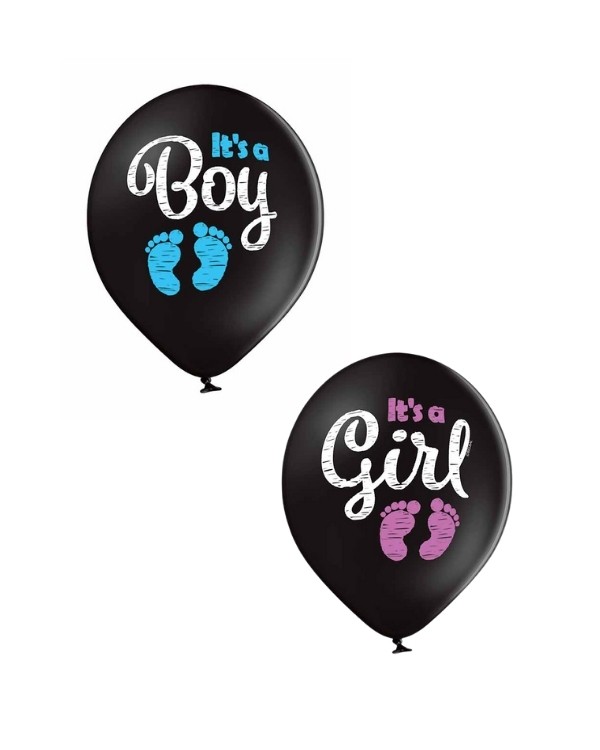 Lateksballong i svart & blå/rosa pastellfarge med tekstdekorasjon: «It’s a Boy/Girl». Passer perfekt til babyshower, eller som en overraskelse til de du ønsker å dele kjønnet på din kommende baby som er på vei. Ballongen kan bli opptil 30cm store når den blåses opp. Alle våre lateksballonger er nedbrytbare i naturen på lik linje med eksempelvis eikeblader.