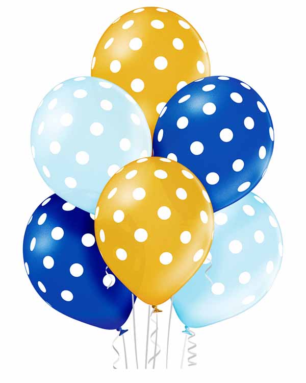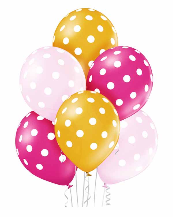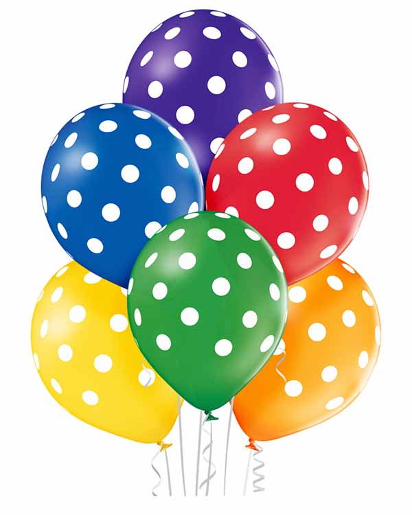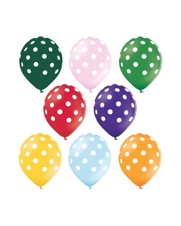 Lateksballong dekorert med polkadotter / prikker, som kommer med bakgrunnsfargene lys rosa, lys grønn, lys blå, gul, lilla, rød, rosa og turkis. Stilig ballong som passer perfekt til dekorasjon i anledning din neste fest. Ballongen kan bli opptil 30cm store når den blåses opp. Alle våre lateksballonger er nedbrytbare i naturen på lik linje med eksempelvis eikeblader.
