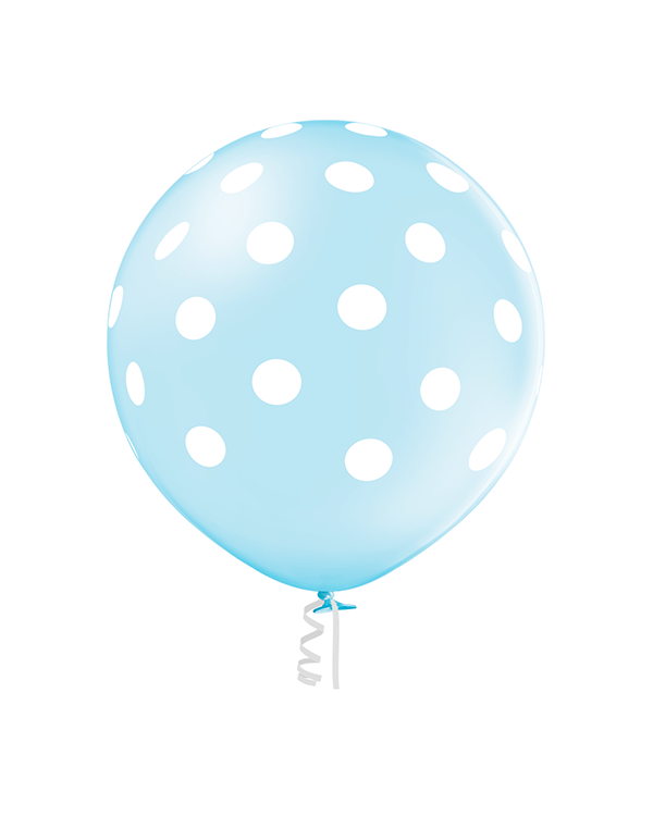 Lateksballong: Polka Dots / Prikker – 60cm – Sky Blue (Crystal)