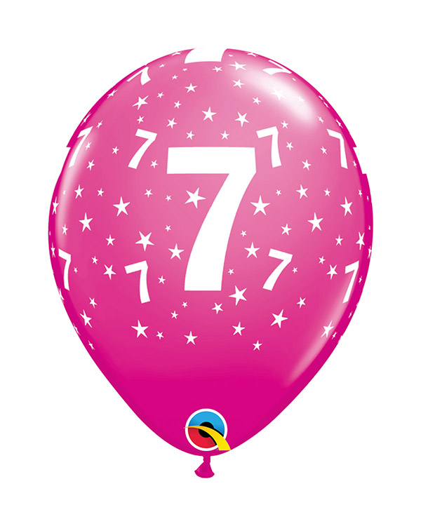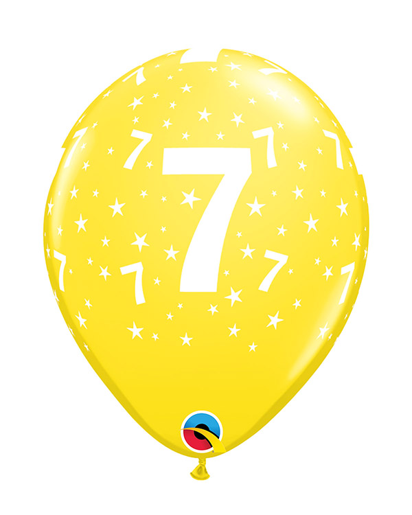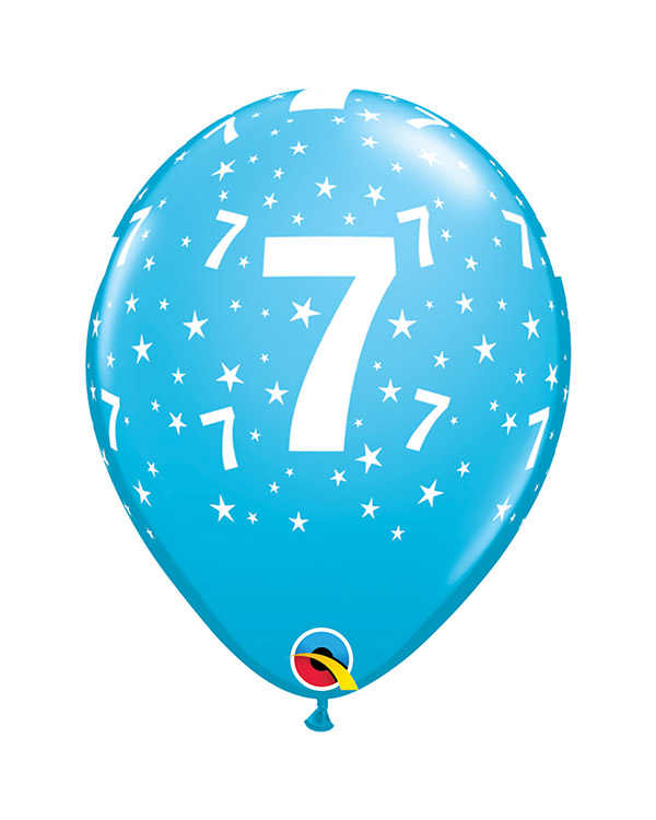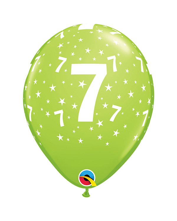 50 stk. Fargerike lateksballonger med tallet «7». Passer perfekt til å feire jubileer, eller til å markere store bursdager i lystige lag. Ballongene kan bli opptil 28cm store når de blåses opp. Alle våre lateksballonger er nedbrytbare i naturen på lik linje med eksempelvis eikeblader.