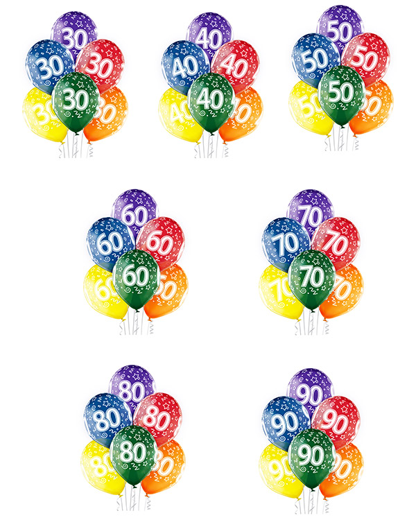 50 stk. Lateksballonger dekorert med forskjellige tilgjengelige tall: 20, 30, 40, 50, 70, 80 og 90. Passer perfekt til å feire jubileer, eller til å markere store bursdager i lystige lag. Settet kommer med seks transparente «Crystal-farger». Ballongene kan bli opptil 30cm store når de blåses opp. Alle våre lateksballonger er nedbrytbare i naturen på lik linje med eksempelvis eikeblader.