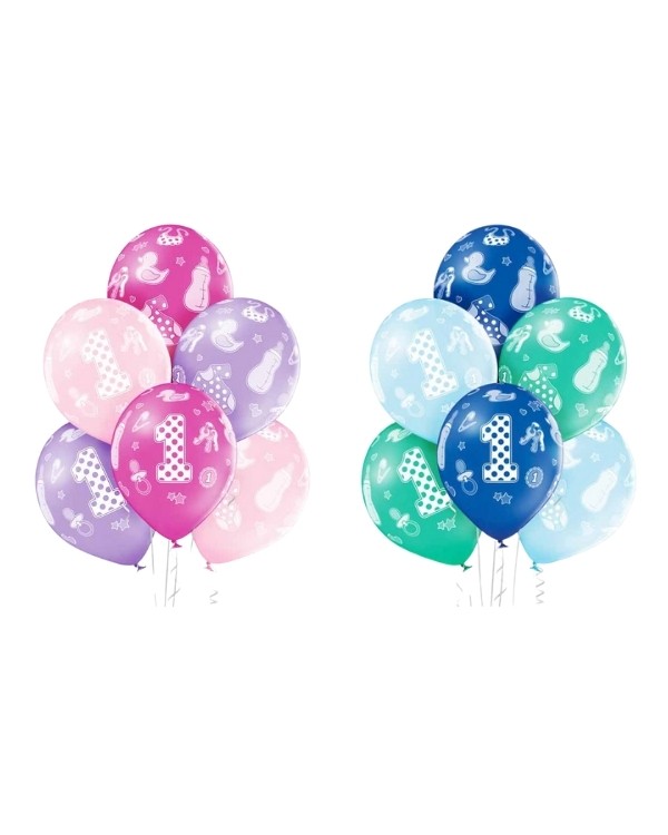 Lateksballonger (6stk): «1» med motiver – Gutt/Jente – 30cm